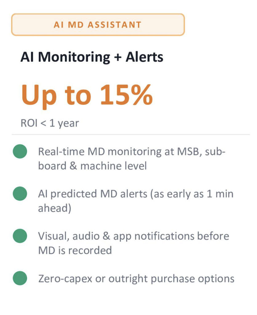 The EasiEMS Pro BESS AI Optimizer tier comes with measurable performance. Savings are measured, monitored, and reported monthly. We share the risk — if the MD target isn’t hit, the model adjusts accordingly.