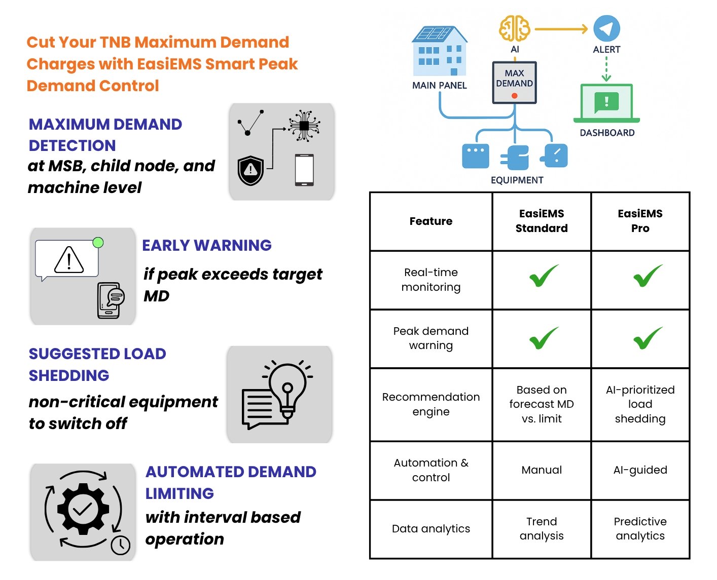 That’s where EasiEMS comes in. Our Smart Peak Demand Control system empowers you with real-time visibility, predictive alerts, and control — all aimed at helping you avoid costly MD penalties.